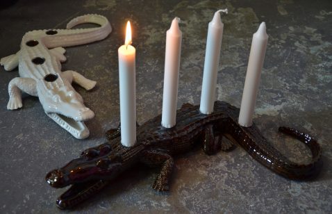 Sedan 2013 arbetar jag i min verkstad i Stjärnhov, Sörmland. Jag arbetar med lokalt uppgrävd lergodslera som jag skulpterar mina unika bruksföremål i. Krokodilerna är gjutna i porslinslera. Jag jobbar hand i hand med slumpen och naivisten och resultatet blir objekt med humor för en gladare vardag.